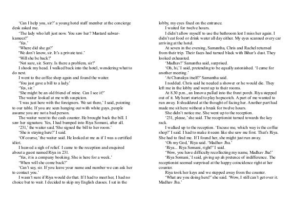 saw her signature. Yes, I had bumped into Riya Somani, after all.