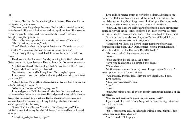 Riya smiled. ‘Let’s eat dinner. No point over-rehearsing. We are all