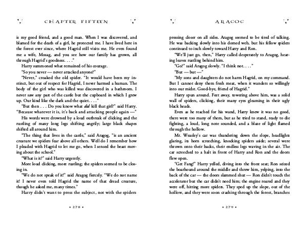 “We do not speak of it!” said Aragog fiercely. “We do not name