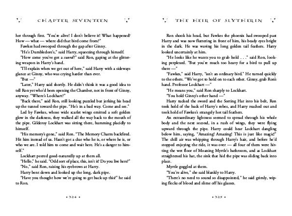 Led by Fawkes, whose wide scarlet wings emitted a soft golden