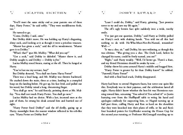 “Harry Potter freed Dobby!” said the elf shrilly, gazing up at