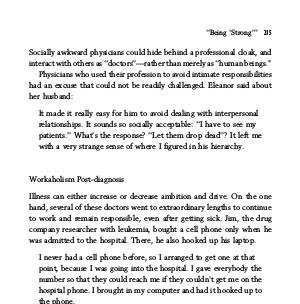their illness. Deborah, the psychiatrist with metastatic breast cancer, said