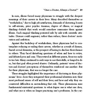 In sum, illness forced many physicians to struggle with the deepest