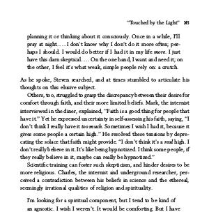 cating the solace that faith might provide. ‘‘I don’t think it’s a real high. I