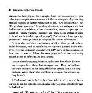 health behaviors, such as unsafe sex, to approach patients more effec-