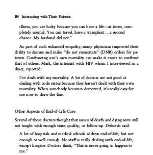 example, doctors should not view a patient’s death as a failure. Eleanor