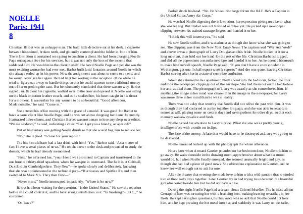 He watched Noelle digesting the information, her expression giving no clue to what she was feeling. But Barbet was not finished with her yet. He picked up a newspaper clipping between his stained sausage fingers and handed it to her.