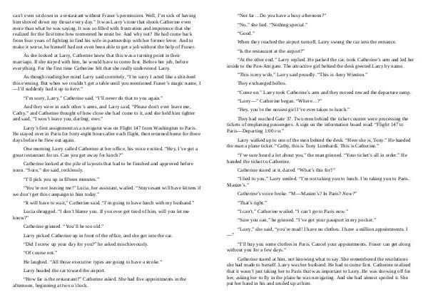 she had made to herself. Larry was her husband. He had to come first. Catherine realized