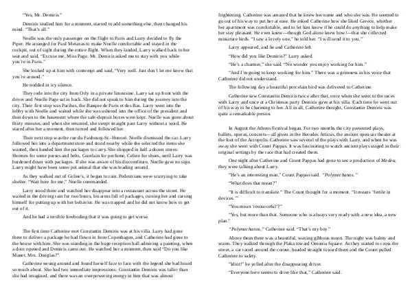 Catherine saw Constantin Demiris twice after that, once when she went to the races with Larry and once at a Christmas party Demiris gave at his villa. Each time he went out of his way to be charming to her. All in all, Catherine thought, Constantin Demiris was quite a remarkable person.