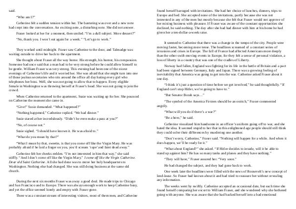interested in any of the men but mostly because she felt that Fraser would not approve of