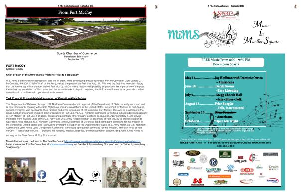 Sparta Chamber of Commerce Newsletter Submission September 2021