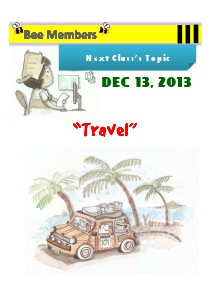 Next Class’s Topic DEC 13, 2013 “Travel”