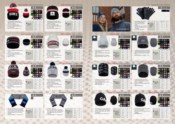 Dubbelstickad mössa i akryl med slätstickat uppvik och sex sömmar i toppen. Inkl. tre instickade färger För garn i egen pms tillkommer 8:- / st per färg. Mått: 23 x 22 cm, uppvik: 7 cm. |