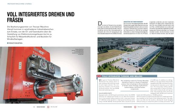 Die mit einem flüssigkeitsgekühlten 68-kW- Direktantrieb ausgerüstete Maschine kann die Bearbeitungsköpfe wechseln und so von einer schweren Fräsmaschine mit einem maximalen Drehmoment von 7400 Nm bei niedrigen Drehzahlen zu einem Hochgeschwindigkeitsbearbeitungszentrum mit einer 42-kW-Elektrospindel zu 400 Nm und einer maximalen Drehzahl von 6000 U / min umgerüstet werden. Die neue DS900 Universal deckt nicht nur Fräs- und Bohrarbeiten ab, sondern auf ihr können auch Bearbeitungsköpfe mit CNCgesteuerten Drehvorrichtungen von Trevisan installiert werden, die Durchmesser von bis zu 1200 mm drehen können. Auch die Spin-