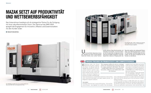 Unter dem Motto „ Experience innovation, empower your future“ wird der Mazak- Stand die Vorteile einer echten Partnerschaft zwischen Maschinenhersteller und Anwender hervorheben, mit einem Stand, der den Kundenerfolg, intelligente Automatisierung und digitale Integration in den Mittelpunkt der modernen Fertigung stellt. Die
