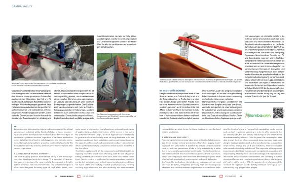 stehen. Das Absturzsicherungssystem mit all seinen Komponenten sowie Whipblock ® werden regelmäßig getestet, um ihre Wirksamkeit sicherzustellen. Ziel ist es, eine gleichbleibende Leistung über die Zeit auch unter extremen Bedingungen zu gewährleisten. Die Qualitätskontrollen beschränken sich nicht auf die Einhaltung gesetzlicher Anforderungen, sondern erkennen auch potenzielle Schwachstellen unter realen Einsatzbedingungen im Voraus. Ergänzt wird dies durch sorgfältig ausgewählte