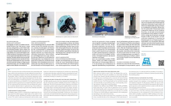 O. M. G. operates all over the world and boasts close partnerships with major machine tool manufacturers, but also addresses end users directly, that is, metalworking companies of any size, subcontractors or retrofit specialists. O. M. G.’ s mainstay is the production department, which is directly connected to the engineering department for the elopement and optimisation of machining programs. The products made to customer specifications are finished on a very high precision boring machine located in a special room at constant temperature and humidity. The company also has test benches of its own design and construction to perform dynamic tests in a systematic way. A test certificate is attached to all series products to guarantee their reliability and quality.