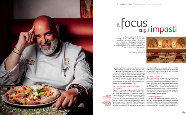 « Da circa nove anni, ossia da quando ho aperto a Rende la mia pizzeria Lorenzo Fortuna- pizza chef, lavoro a un progetto che mette al centro la Calabria con la sua straordinaria biodiversità: le mie pizze sono al 90 % composte da ingredienti della mia regione, famosa soprattutto per la produzione di salumi e ortaggi. Anche le farine che uso provengono da un molino storico di Cosenza e alcune sono ottenute con grani locali come il Verna silano, una produzione di nicchia visto che la coltivazione del grano nella nostra terra è ancora molto limitata ».