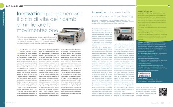 ’ elevato know-how tecnologico e la presenza di un laboratorio in house permettono al team di Ricerca e Sviluppo di sperimentare e testare costantemente nuove soluzioni : grazie a questo incessante lavoro di ricerca , recentemente sono stati introdotti sistemi sia per aumentare il ciclo di vita dei ricambi sulle macchine top seller del marchio sia per migliorare la movimentazione . COLORGLASS e MULTIGLASS , le rollatrici per la verniciatura , la smaltatura e la stampa a disegno sulle lastre di vetro piano , sono state oggetto di una riprogettazione al fine di preservare la durata di alcuni componenti specifici , ossia cilindri e lame . Queste macchine in passato montavano cilindri in acciaio e cilindri in acciaio rivestiti in gomma morbida . Attualmente , invece , i rulli sono stati sostituiti da mandrini in acciaio a espansione pneumatica : si tratta di fusti su cui vengono montati delle maniche (“ sleeve ”) gommate e incise . Per il montaggio viene utilizzata aria compressa per espandere la manica durante l ’ inserimento : nel corso della lavorazione , in assenza di aria compressa , la manica resta bloccata sul mandrino e non si sfila . Si tratta di un ’ innovazione che porta molti vantaggi ai clienti per diversi motivi : prima di tutto , la movimentazione da parte degli operatori viene facilitata e alleggerita , diventando user-friendly . Nei modelli precedenti i cilindri in acciaio , essendo molto pesanti , rendevano più difficoltose le operazioni di cambio articolo ; inoltre , rappresentavano un ricambio piuttosto costoso . Le sleeves , invece , sono più leggere , sono disponibili per tutte le luci macchina e permettono un immagazzinaggio “ salva-spazio ” in verticale : in aggiunta , questo sistema è molto conveniente perché , oltre ad essere più economico , utilizza i mandrini che non sono soggetti