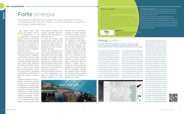A seguito degli ultimi anni durante i quali la collaborazione è via via aumentata e progressivamente è cresciuta anche la partecipazione societaria , abbiamo ora il piacere di annunciare che il processo di integrazione si è concluso ed ha portato alla recente fusione per incorporazione di RO in Optima . Questa incorporazione , in una visione più ampia , è conseguenza del recente ingresso l ’ anno scorso nel capitale sociale della Optima del gruppo Zucchetti Spa , azienda leader indiscussa nel campo del software gestionale in Italia , ed alla volontà della stessa Zucchetti di creare una unica realtà di eccellenza mondiale per il settore del software per vetrerie , con base in Italia . L ’ intento è quello di unire le rispettive competenze acquisite in questi 30 anni di attività sia per migliorare i prodotti attuali , attingendo a quanto già fatto sia da RO che da Optima che , in prospettiva di medio periodo , creare nuove soluzioni software sempre più avanzate e performanti , completamente integrate con i tantissimi prodotti della gamma Zucchetti quali contabilità , logistica e trasporti , Crm , controllo presenze , dispositivi hardware per tracciamento e molto altro ancora . Le novità dei prossimi mesi saranno quindi molte e già da questa fiera è emersa una prima sinergia nell ’ ambito della localizzazione dei mezzi e soprattutto dei cavalletti Tramite una partnership con una azienda del gruppo ( GuardOne Italia ) siamo ora in grado di offrire servizi Web di Fleet Management integrabili al gestionale ed è possibile rispondere alle esigenze della vetreria che ha necessità di gestire l ’ o- peratività e le informazioni provenienti dai propri mezzi . Oltre alla possibilità di tracciare i mezzi utilizzati per le consegne con sistemi Gps direttamente integrati sul veicolo mediante GPS autoalimentati ( collegati al sistema Glonass ), sarà inoltre possibile conoscere con esattezza la posizione di ogni cavalletto di spedizione . Con l ’ applicativo Web dedicato , integrabile con i gestionali della famiglia Enterprise e Perfect ERP , sarà possibile monitorare la posizione del singolo cavalletto , ricostruire lo storico movimenti e generare alert nel caso in cui il cavalletto sia rilevato in aree diverse da quelle associabili al cliente presso il quale il cavalletto è stato depositato . I cavalletti sono localizzati su mappe interattive , Google e PTV , consentendo agli utenti di individuare cavalletti da recuperare lungo il tragitto e / o di creare percorsi dedicati alla raccolta dei cavalletti disponibili per il rientro .