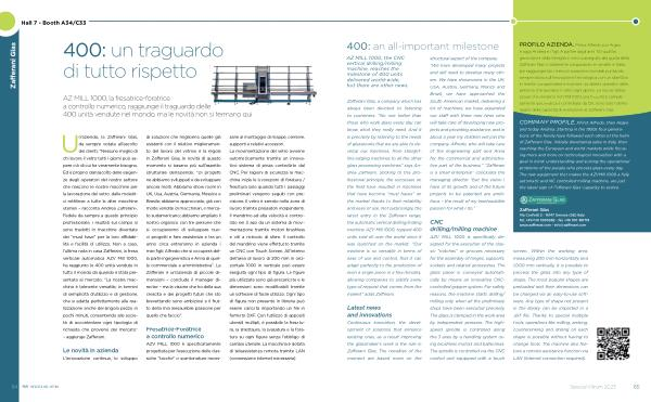 AZ MILL 1000 , la fresatrice-foratrice a controllo numerico , raggiunge il traguardo delle 400 unità vendute nel mondo , ma le novità non si fermano qui