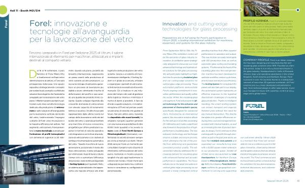 our customers directly. Vitrum 2025 is a moment that Forel will consolidate its role as a reference point in flat glass innovation, showcasing relevant and tangible solutions that are already transforming glass businesses around
