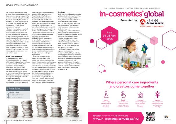 ( REFIT), which is assessing various aspects of CLP, the Cosmetics Regulation and the Fertiliser Regulation. The focus of these assessments is to identify areas where the regulations could benefit from streamlining and modernisation, making them more efficient and cost-effective for industry while still ensuring a high level of protection for human and environmental health.