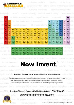www. americanelements. com © 1997-2026. American Elements is a U. S. Registered Trademark American Elements Opens a World of Possibilities... Now Invent! europium phosphors additive manufacturing ultra high purity materials 99.99999 % mercury endohedral fullerenes transparent ceramics diamond micropowder alternative energy sputtering targets 3D graphene foam ngsten carbide glassy carbon isotopes tovoltaics biosynthetics uantum dots superconducto InAs wafers platinum ink perovskite crystals CIGS thin film osmium buckyballs zeolites Nd: YAG NMC deposition slugs organometallics gold nanocubes mesoporus silica chalcogenides laser crystals OLED lighting graphene oxide flexible electronics metallocenes CVD precursors pyrolitic graphite silver MOFs palladium catalysts nickel foam III-IV semiconductors ITO scandium powder nogels surface functionalized nanoparticles mischmetal ultralight aerospace alloys nanodispersions Ti-6Al-4 h-BN OCVD Invar InGaAs GDC AuNPs EuFOD YBCO metamaterials Now Invent ṬM The Next Generation of Material Science Manufacturers Bulk & lab scale manufacturers of over 35,000 certified high purity compounds, chemicals, metals, and nanoparticles, including a wide range of materials for aerospace, automotive, military, pharmaceutical, and electronics, all engineered to meet the most rigorous quality standards. radiation shielding zircaloy-4 ntaloy 60 metallic glass titanium a rare earth optical fiber dopants niobium C103 UHP fluorides SOFC powder rare earth metals carbon nanotube 99.9999 % aluminum oxide um TZM li-ion battery materials borophene 140.116 Cerium 58 2 8 18 19 9 2 Ce 140.90765 Praseodymium 59 2 8 18 21 8 2 Pr 144.242 Neodymium 60 2 8 18 22 8 Nd 2( 145) Promethium 61 2 8 18 23 8 Pm 2 150.36 Samarium 62 2 8 18 24 8 Sm 2 151.964 Europium 63 2 8 18 25 8 Eu 2 157.25 Gadolinium 64 2 8 18 25 9 Gd 2 158.92535 Terbium 65 2 8 18 27 8 Tb 2 162.5 Dysprosium 66 2 8 18 28 8 2 Dy 164.93032 Holmium 67 2 8 18 29 8 Ho 2 167.259 Erbium 68 2 8 18 30 8 2 Er 168.93421 Thulium 69 2 8 18 31 8 Tm 2 173.054 Ytterbium 70 2 8 18 32 8 Yb 2 174.9668 Lutetium 71 2 8 18 32 9 2 Lu 232.03806 Thorium 90 2 8 18 32 18 10 2 Th 231.03588 Protactinium 91 2 8 18 32 20 9 2 Pa 238.02891 Uranium 92 2 8 18 32 21 9 2 U( 237) Neptunium 93 2 8 18 32 22 9 Np 2( 244) Plutonium 94 2 8 18 32 24 8 Pu 2( 243) Americium 95 2 8 18 32 25 8 Am 2( 247) Curium 96 2 8 18 32 25 9 Cm 2( 247) Berkelium 97 2 8 18 32 27 8 2 Bk( 251) Californium 98 2 8 18 32 28 8 2 Cf( 252) Einsteinium 99 2 8 18 32 29 8 2 Es( 257) Fermium 100 2 8 18 32 30 8 Fm 2( 258) Mendelevium 101 2 8 18 32 31 8 Md 2( 259) Nobelium 102 2 8 18 32 32 8 No 2( 262) Lawrencium 103 2 8 18 32 32 8 3 Lr 1.00794 Hydrogen 1 1 H 6.941 Lithium 3 2 1 Li 9.012182 Beryllium 4 2 2 Be 22.98976928 Sodium 11 2 8 1 Na 24.305 Magnesium 12 2 8 2 Mg 39.0983 Potassium 19 2 8 8 1 K 40.078 Calcium 20 2 8 8 2 Ca 85.4678 Rubidium 37 2 8 18 8 Rb 1 87.62 Strontium 38 2 8 18 8 2 Sr 132.9054 Cesium 55 2 8 18 18 8 1 Cs 137.327 Barium 56 2 8 18 18 8 2 Ba( 223) Francium 87 2 8 18 32 18 8 1 Fr( 226) Radium 88 2 8 18 32 18 8 2 Ra 44.955912 Scandium 21 2 8 9 2 Sc 47.867 Titanium 22 2 8 10 2 Ti 50.9415 Vanadium 23 2 8 11 2 V 51.9961 Chromium 24 2 8 13 1 Cr 54.938045 Manganese 25 2 8 13 Mn 2 55.845 Iron 26 2 8 14 2 Fe 58.933195 Cobalt 27 2 8 15 Co 2 58.6934 Nickel 28 2 8 16 2 Ni 63.546 Copper 29 2 8 18 Cu 1 65.38 Zinc 30 2 8 18 Zn 2 88.90585 Yttrium 39 2 8 18 9 2 Y 91.224 Zirconium 40 2 8 18 10 2 Zr 92.90638 Niobium 41 2 8 18 12 Nb 1 95.96 Molybdenum 42 2 8 18 13 Mo 1( 98.0) Technetium 43 2 8 18 13 2 Tc 101.07 Ruthenium 44 2 8 18 15 Ru 1 102.9055 Rhodium 45 2 8 18 16 Rh 1 106.42 Palladium 46 2 8 18 Pd 18 107.8682 Silver 47 2 8 18 18 Ag 1 112.411 Cadmium 48 2 8 18 18 Cd 2 138.90547 Lanthanum 57 2 8 18 18 9 2 La 178.48 Hafnium 72 2 8 18 32 10 2 Hf 180.9488 Tantalum 73 2 8 18 32 11 2 Ta 183.84 Tungsten 74 2 8 18 32 12 W 2 186.207 Rhenium 75 2 8 18 32 13 2 Re 190.23 Osmium 76 2 8 18 32 14 Os 2 192.217 Iridium 77 2 8 18 32 15 2 Ir 195.084 Platinum 78 2 8 18 32 17 1 Pt 196.966569 Gold 79 2 8 18 32 18 Au 1 200.59 Mercury 80 2 8 18 32 18 Hg 2( 227) Actinium 89 2 8 18 32 18 9 2 Ac( 267) Rutherfordium 104 2 8 18 32 32 10 2 Rf( 268) Dubnium 105 2 8 18 32 32 11 Db 2( 271) Seaborgium 106 2 8 18 32 32 12 Sg 2( 272) Bohrium 107 2 8 18 32 32 13 Bh 2( 270) Hassium 108 2 8 18 32 32 14 2 Hs( 276) Meitnerium 109 2 8 18 32 32 15 2 Mt( 281) Darmstadtium 110 2 8 18 32 32 17 1 Ds( 280) Roentgenium 111 2 8 18 32 32 18 Rg 1( 285) Copernicium 112 2 8 18 32 32 18 Cn 2 4.002602 Helium 2 2 He 10.811 Boron 5 2 3 B 12.0107 Carbon 6 2 4 C 14.0067 Nitrogen 7 2 5 N 15.9994 Oxygen 8 2 6 O 18.9984032 Fluorine 9 2 7 F 20.1797 Neon 10 2 8 Ne 26.9815386 Aluminum 13 2 8 3 Al 28.0855 Silicon 14 2 8 4 Si 30.973762 Phosphorus 15 2 8 5 P 32.065 Sulfur 16 2 8 6 S 35.453 Chlorine 17 2 8 7 Cl 39.948 Argon 18 2 8 8 Ar 69.723 Gallium 31 2 8 18 Ga 3 72.64 Germanium 32 2 8 18 Ge 4 74.9216 Arsenic 33 2 8 18 5 As 78.96 Selenium 34 2 8 18 6 Se 79.904 Bromine 35 2 8 18 7 Br 83.798 Krypton 36 2 8 18 8 Kr 114.818 Indium 49 2 8 18 18 3 In 118.71 Tin 50 2 8 18 18 Sn 4 121.76 Antimony 51 2 8 18 18 Sb 5 127.6 Tellurium 52 2 8 18 18 6 Te 126.90447 Iodine 53 2 8 18 18 7 I 131.293 Xenon 54 2 8 18 18 8 Xe 204.3833 Thallium 81 2 8 18 32 18 3 Tl 207.2 Lead 82 2 8 18 32 18 Pb 4 208.9804 Bismuth 83 2 8 18 32 18 5 Bi( 209) Polonium 84 2 8 18 32 18 Po 6( 210) Astatine 85 2 8 18 32 18 7 At( 222) Radon 86 2 8 18 32 18 Rn 8( 284) Nihonium 113 2 8 18 32 32 18 3( 289) Flerovium 114 2 8 18 32 32 18 4 Fl( 288) Moscovium 115 2 8 18 32 32 18 5( 293) Livermorium 116 2 8 18 32 32 18 6 Lv( 294) Tennessine 117 2 8 18 32 32 18 7( 294) Oganesson 118 2 8 18 32 32 18 8 Nh Mc Cn Ts Og A M E R I C A N E L E M E N T S A N N I V ER S A RY 1997- 2026