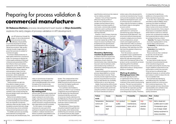 Dr Rebecca Matters, process development team leader at Onyx Scientific, explores the early stages of process validation in API development