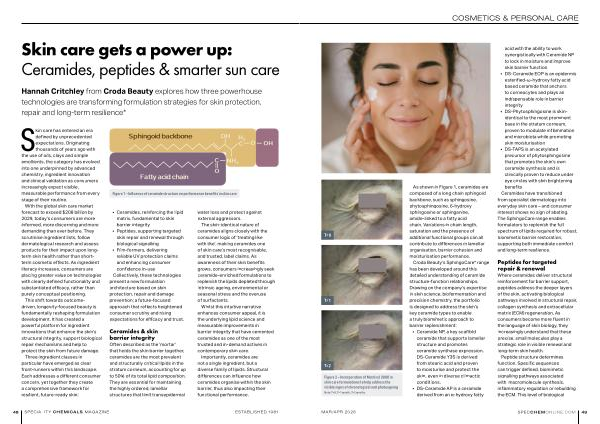 Croda Beauty’ s SphingoCare * range has been developed around this detailed understanding of ceramide structure-function relationships. Drawing on the company’ s expertise in skin science, biofermentation and precision chemistry, the portfolio is designed to address the skin’ s key ceramide types to enable a truly biomimetic approach to barrier replenishment: