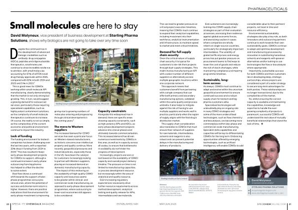 So, whilst ensuring the correct capacity is available and maintaining the capabilities, knowledge and expertise to handle the evergrowing complexity of projects is paramount, successful CDMOs will understand the real value of mutually beneficial relationships that stand the test of time. ●