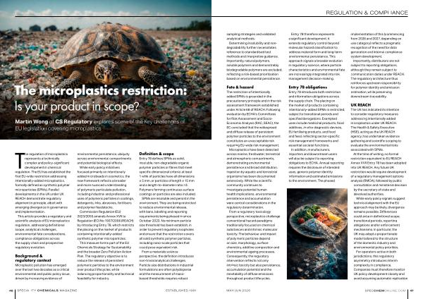 Martin Wong of CS Regulatory explores some of the key challenges of EU legislation covering microplastics
