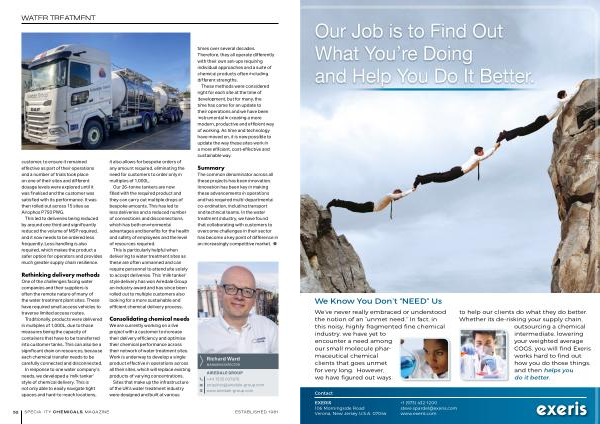 The common denominator across all these projects has been innovation. Innovation has been key in making these advancements in operations and has required multi-departmental co-ordination, including transport and technical teams. In the water treatment industry, we have found that collaborating with customers to overcome challenges in their sector has become a key point of difference in an increasingly competitive market. ●