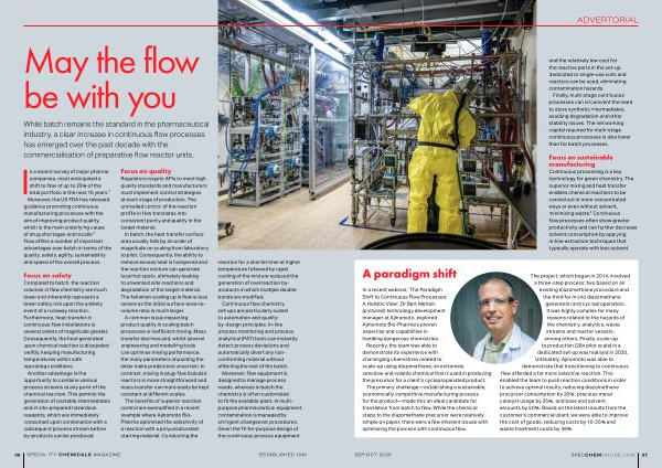 In a recent survey of major pharma companies, most anticipated a shift to flow of up to 25 % of the total portfolio in the next 15 years. 1 Moreover, the US FDA has released guidance promoting continuous manufacturing processes with the aim of improving product quality, which is the main underlying cause of drug shortages and recalls. 2 Flow offers a number of important advantages over batch in terms of the quality, safety, agility, sustainability and speed of the overall process.