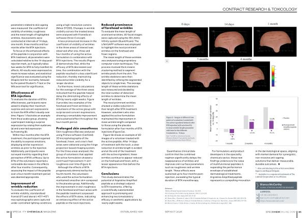 Figure 5b shows an example of 3D images of a volunteer treated with the active peptide. After 14 days of treatment with the toxin, a clear reduction in wrinkle length is evident and at the end of the treatment with the active ingredient, these wrinkles continue to appear reduced on the forehead and frown, with a lesser appearance than before the BTA injections.