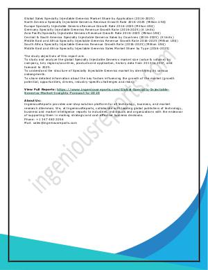 View Full Reports: https://www.ingeniousreports.com/Global-Specialty-Injectable-