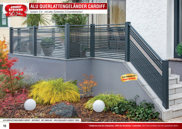 ALU QUERLATTENGELÄNDER CARDIFF- ANTHRAZIT- MIT HANDLAUF- EDELSTAHLGURTE( CARDIFF YORK)