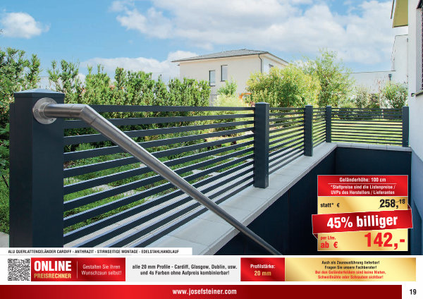 Auch als Zaunausführung lieferbar! Fragen Sie unsere Fachberater! Bei den Geländerfeldern sind keine Nieten, Schweißnähte oder Schrauben sichtbar! www. josefsteiner. com 19