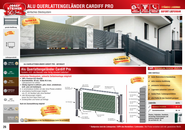 ALU QUERLATTENGELÄNDER CARDIFF PRO einfaches Stecksystem