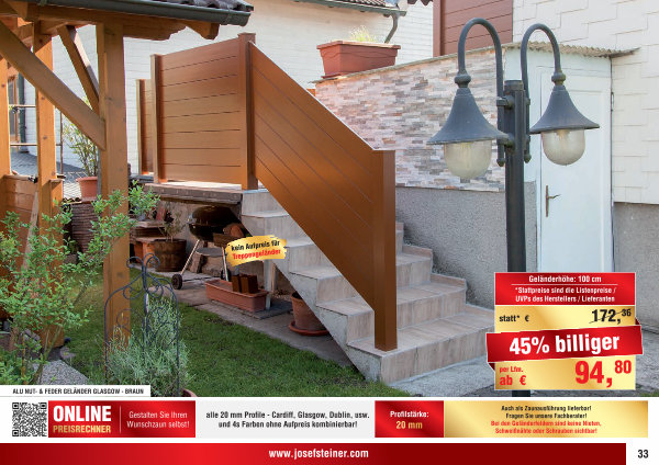 Auch als Zaunausführung lieferbar! Fragen Sie unsere Fachberater! Bei den Geländerfeldern sind keine Nieten, Schweißnähte oder Schrauben sichtbar! |