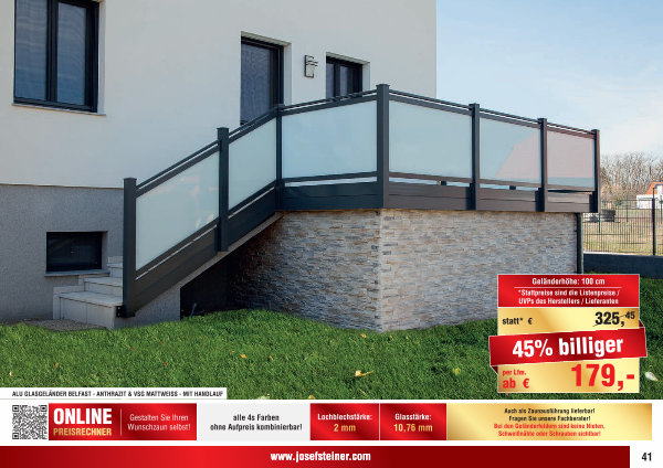 ALU GLASGELÄNDER BELFAST- ANTHRAZIT & VSG MATTWEISS- MIT HANDLAUF |