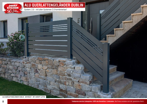ALU QUERLATTENGELÄNDER DUBLIN- ANTHRAZIT- MIT CARDIFF LATTEN