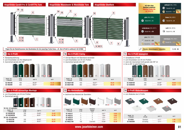 Fügen Sie der Bestellnummer den Buchstaben für die jeweilige Farbe hinzu. z. B. Alu U-Profil in anthrazit: AZ-U100A
