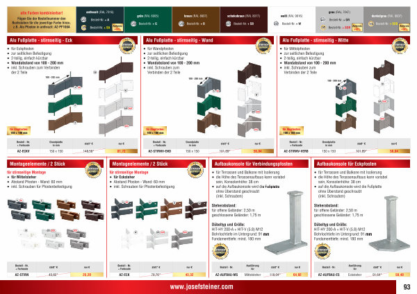 Fügen Sie der Bestellnummer den Buchstaben für die jeweilige Farbe hinzu. z. B. Alu Pfosten in anthrazit: AZ-PF100A