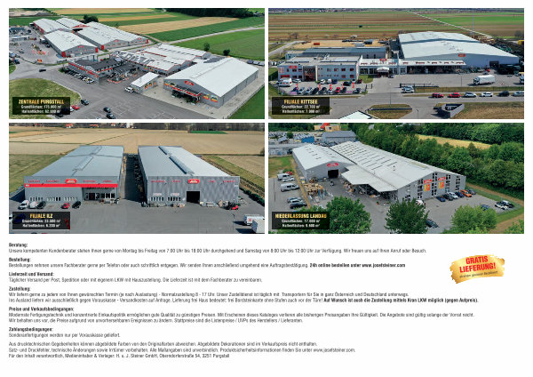 Bestellung: Bestellungen nehmen unsere Fachberater gerne per Telefon oder auch schriftlich entgegen. Wir senden Ihnen anschließend umgehend eine Auftragsbestätigung. 24h online bestellen unter www. josefsteiner. com