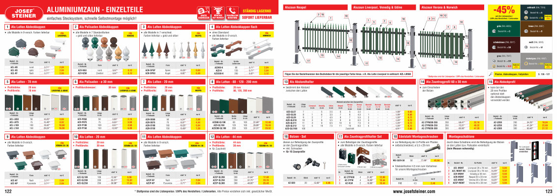 • alle Modelle in 7 Standardfarben + gold und silber lieferbar |