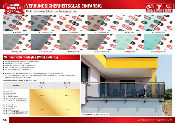 • jedes VSG aus Float, ESG oder TVG erhältlich
