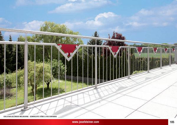 EDELSTAHLGELÄNDER MELBOURNE- SENKRECHTE STÄBE & VSG EINFARBIG www. josefsteiner. com 105