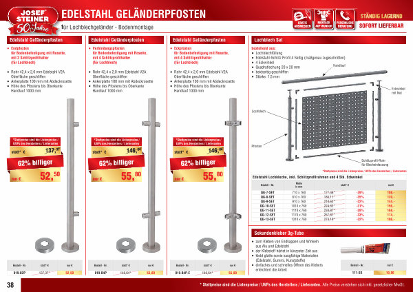 EDELSTAHL GELÄNDERPFOSTEN für Lochblechgeländer- Bodenmontage