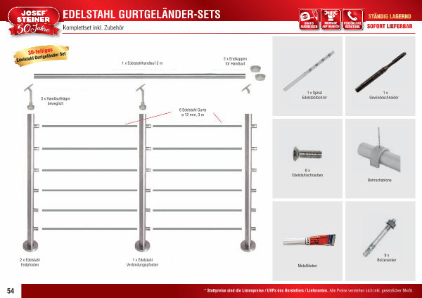 EDELSTAHL GURTGELÄNDER-SETS Komplettset inkl. Zubehör